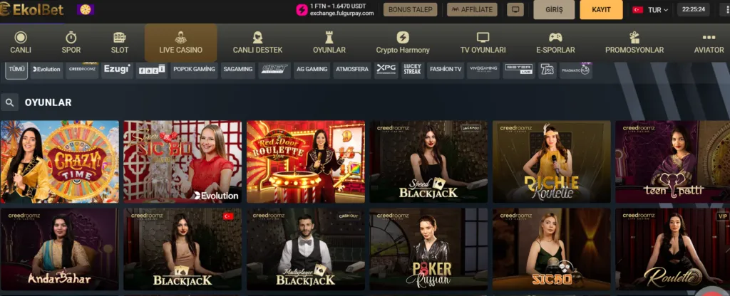 Ekolbet, canlı casino oyunları konusunda da iddialı bir platform sunmaktadır. Canlı krupiyeler eşliğinde gerçek casinoların keyfini evinize taşıyan Ekolbet, oyunculara interaktif ve heyecan dolu bir deneyim yaşatmaktadır.