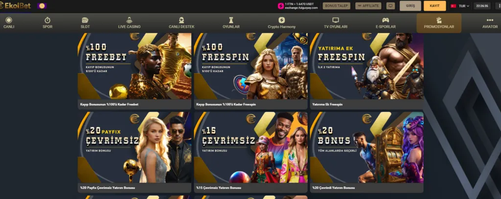 Güncel bonuslar ise Ekolbet’in kullanıcılara sunmuş olduğu cazip fırsatlardan sadece biridir. Yeni üyelere özel hoşgeldin bonusundan kayıp bonuslarına kadar çeşitli promosyonlar mevcuttur. Bu bonuslar, kullanıcıların bahis deneyimlerini daha keyifli hale getirmeye yardımcı olur.