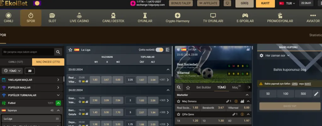 Ekolbet, sağladığı sorunsuz bahis deneyimi ile oyuncuların beklentilerini karşılayan bir platformdur. Kullanıcı dostu arayüzü sayesinde siteye hızlıca alışabilir ve favori spor müsabakalarına kolayca erişebilirsiniz. Tek tıklamayla bahis yapma imkanı sunması, kullanıcıların vakit kaybetmeden oyun keyfini çıkarmasını sağlar.